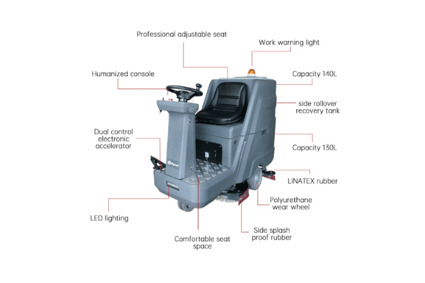 Equipped with a powerful rear-wheel drive and a compact turning radius of just 80 cm, the RS140 offers outstanding maneuverability. It can easily navigate crowded warehouses, busy shopping centers, and other challenging environments. Its excellent uphill performance further adds to its versatility, making it suitable for a wide range of cleaning scenarios.